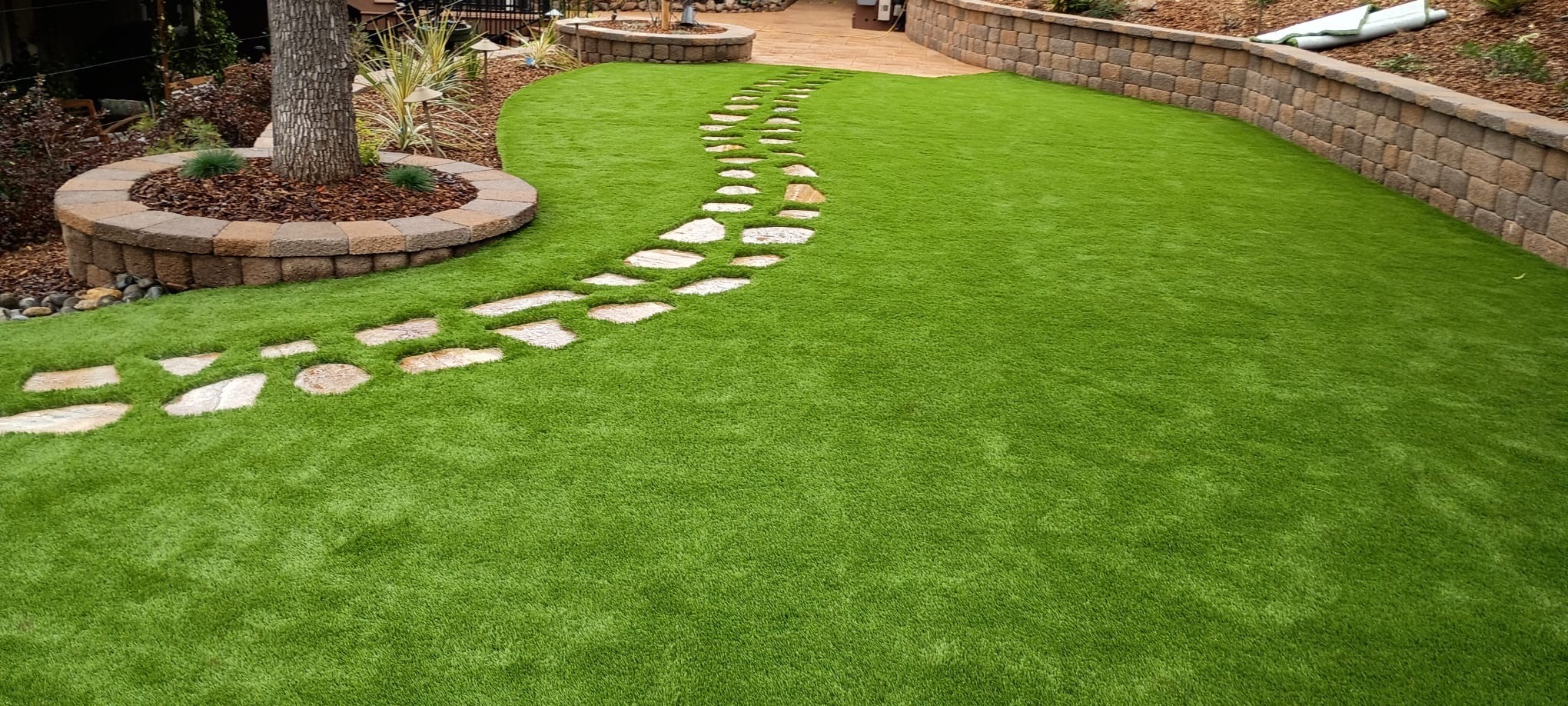 Their turf stays green year-round, saves water, eliminates mowing and trimming, resists brown patches and mud, and holds up under kids, pets, and heavy use.