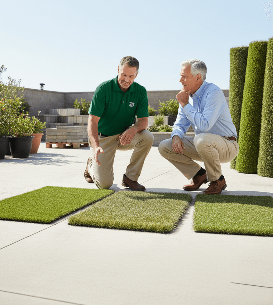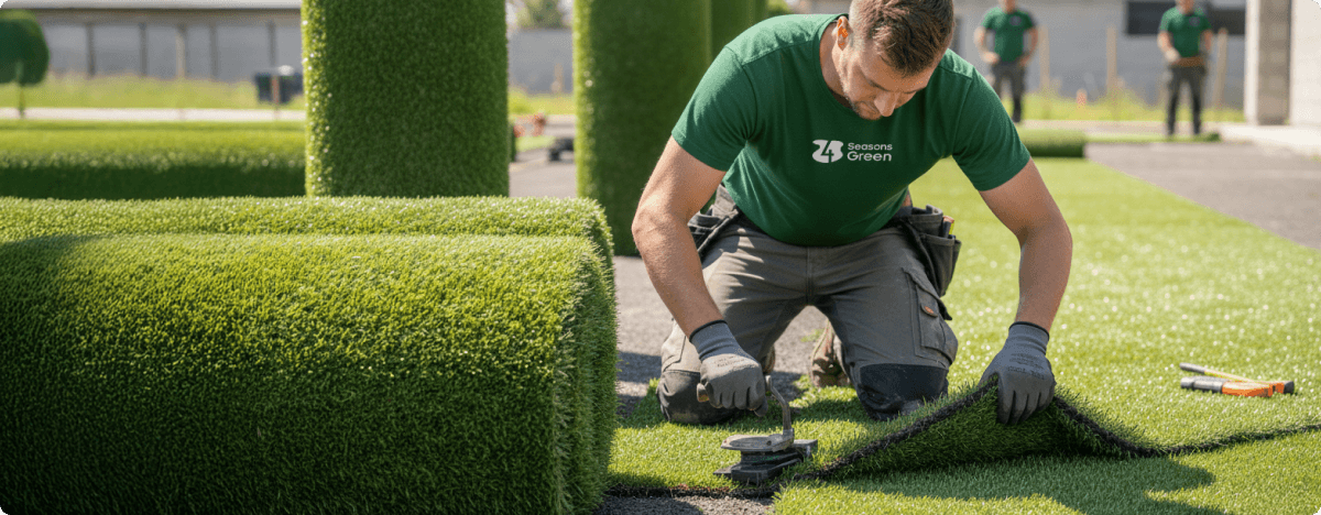 Your chosen artificial turf is rolled out, trimmed to fit your space perfectly, and aligned for a natural look.