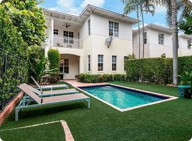 Perfect for playgrounds, Bocce courts, patios, and pool surrounds, our soft, non-abrasive turf makes lounging, play, and parties safer and more enjoyable for everyone.