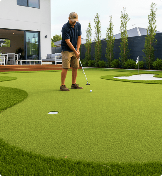 Practice like the pros in your backyard! Our pro-grade putting surfaces deliver consistent ball roll and great looks, elevating your leisure time and entertaining guests.